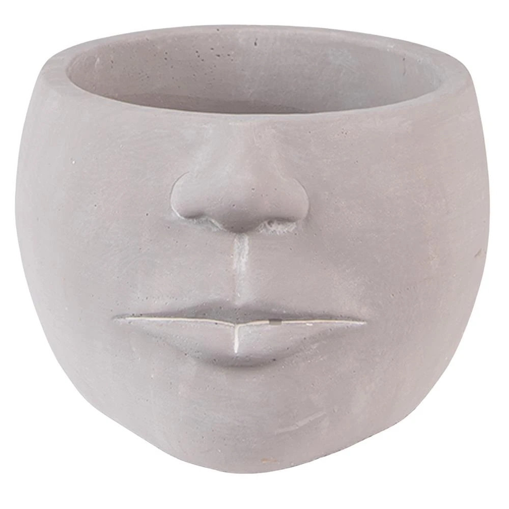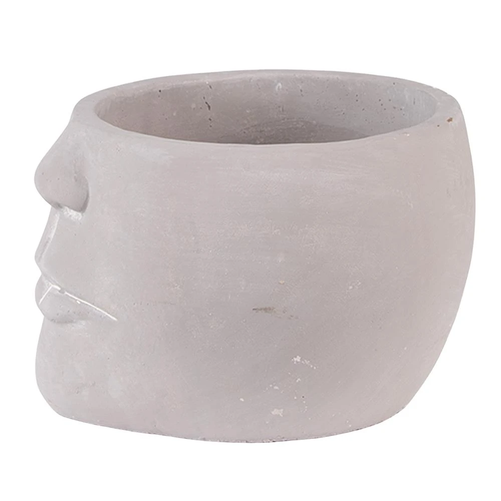 Mooie grijze stenen moderne decoratieve bloempot in de vorm van een gezicht voor binnen van het merk Clayre & Eef. De opening van de pot is Ø 15×15 cm. De bloempot zal niet waterdicht zijn.