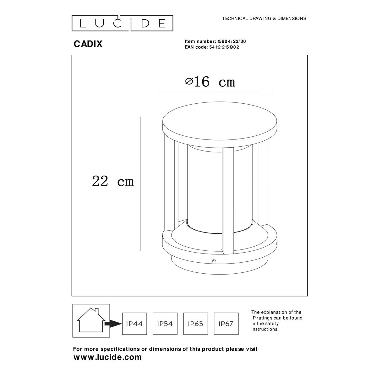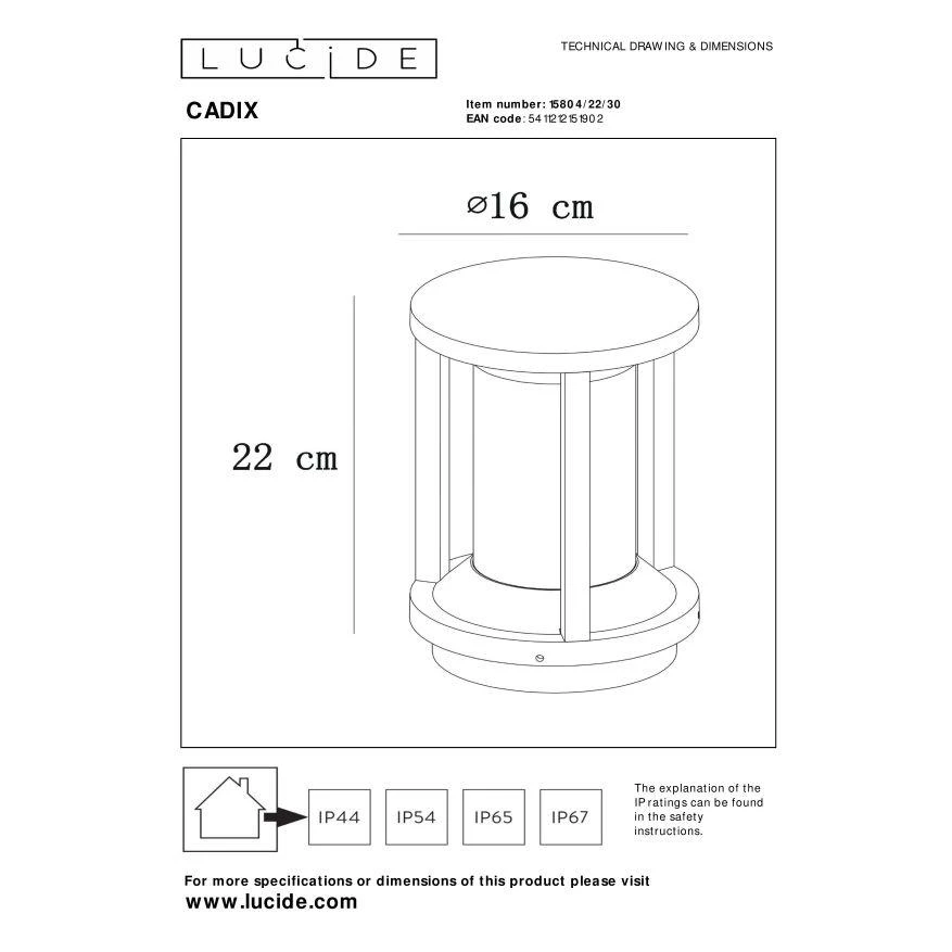 Lucide CADIX – Sokkellamp Buiten – Ø 16 cm – 1xE27 – IP65 – Zwart